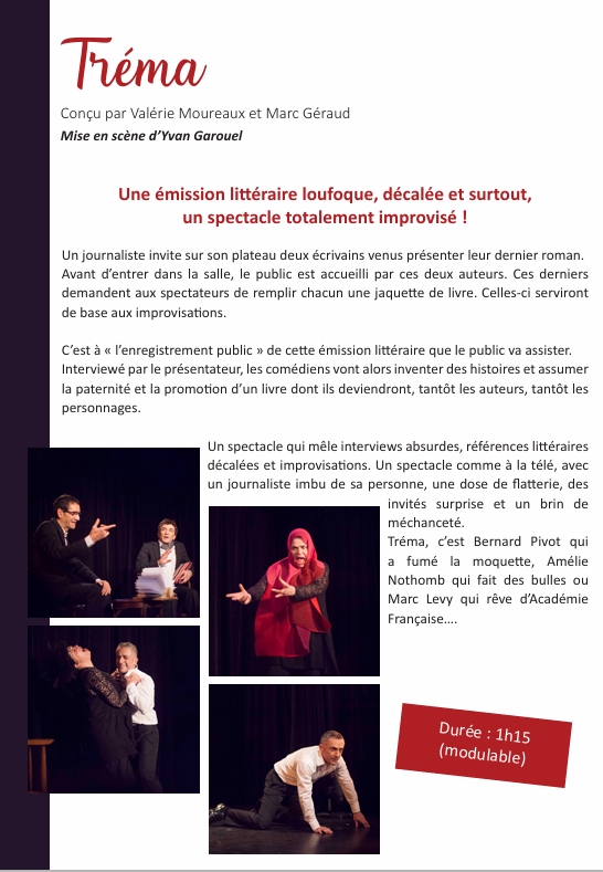 Un spectacle d’impro qui mêle interviews absurdes et références littéraires décalées ! Un Show comme à la télé, avec un journaliste imbu de sa personne, une dose de flatterie, des invités surprise, un brin de méchanceté et des impros de haute volée.