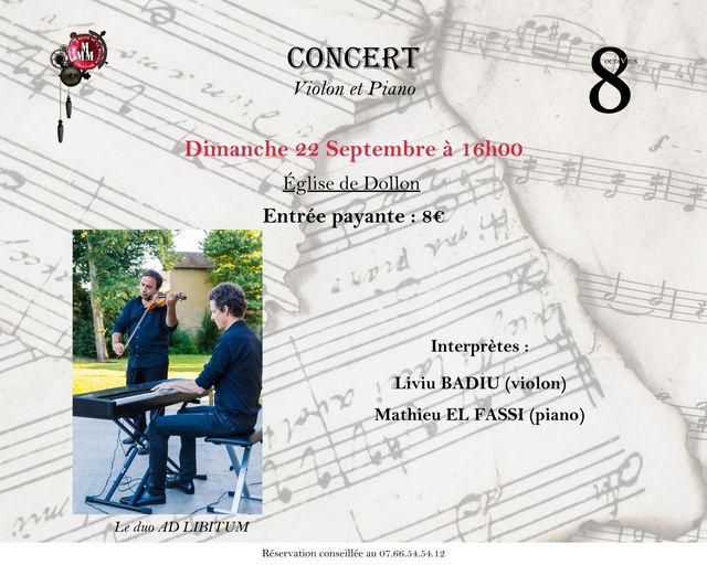 Le duo formé par Liviu BADIU et Mathieu EL FASSI, se produira le dimanche 22 septembre à 16h à l'église de Dollon.